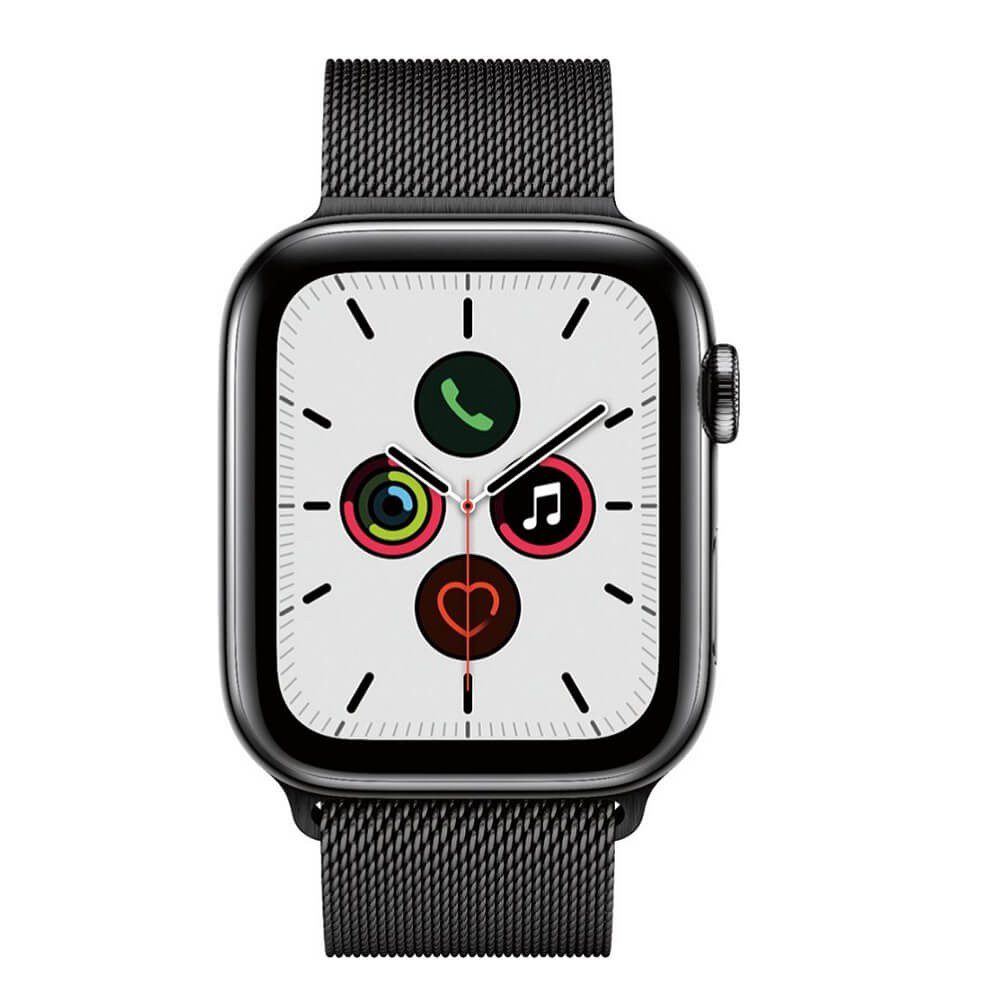 Apple – Apple Watch (último modelo) Serie 5 GPS LTE de 44 mm acero inoxidable con correa milaness – Negro MWW82LZ/A