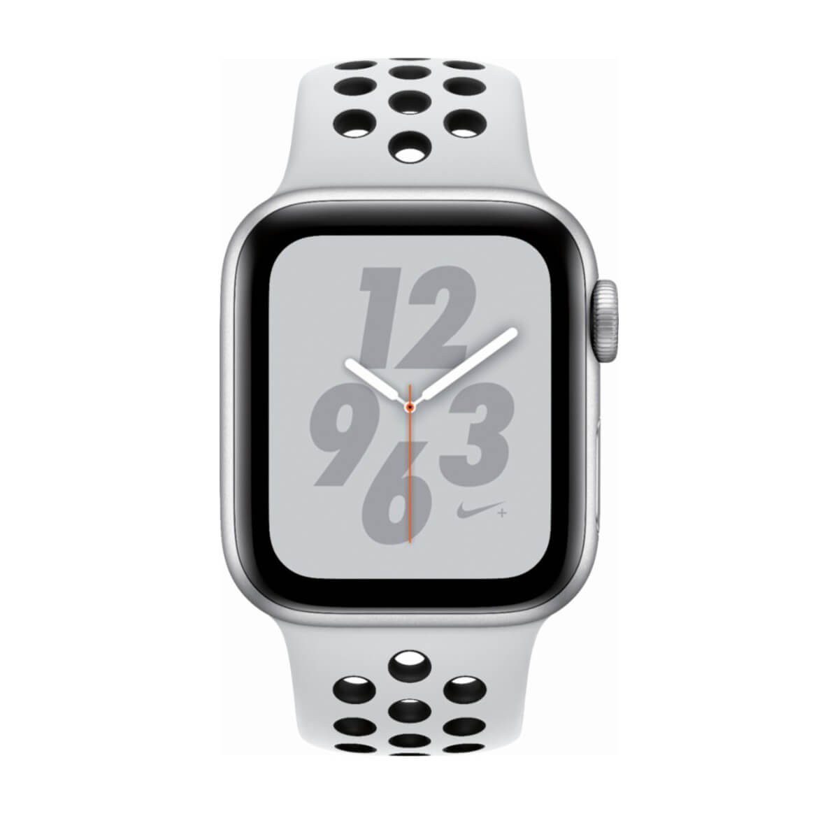 Apple Watch Nike+ Series 4 de 40 mm cuerpo de aluminio en color plata con banda deportiva negra y blanca oro – Plata MU6H2LZ/A