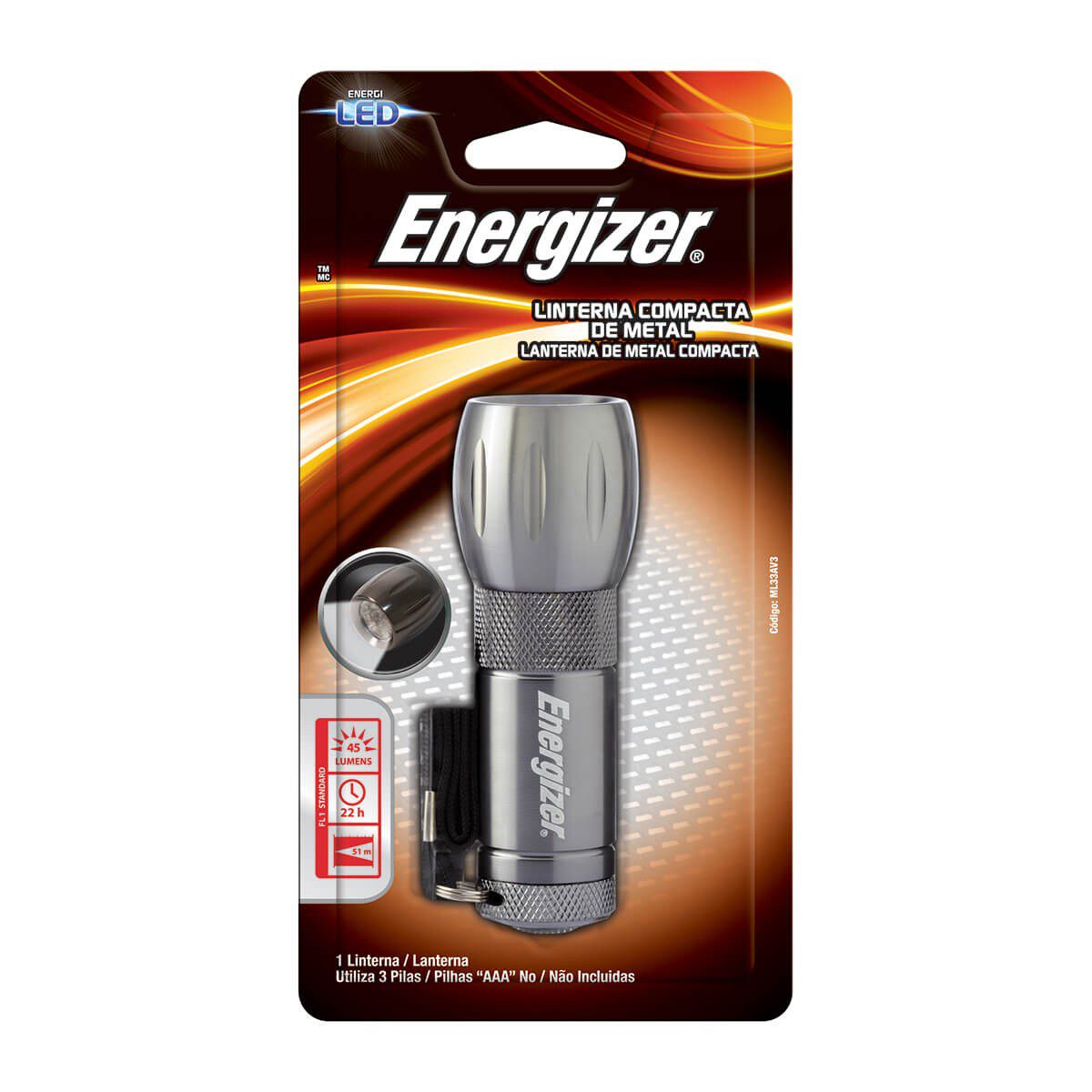 Energizer – Linterna metálica de 6 LED – Negro LINTERNA 6 LEDS COMPACTA